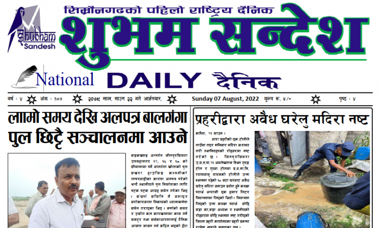 Home/पत्रपत्रिका/२०७९ साउन २२ गतेको प्रकाशित दैनिक २०७९ साउन २२ गतेको प्रकाशित दैनिक शुभम सन्देश प्रकाशित : २०७९ श्रावण २२,आईतवार 806 यहाँ बाट डाउन लोड गरि पढनु होस् । आफ्नो प्रतिक्रिया दिनुहोस