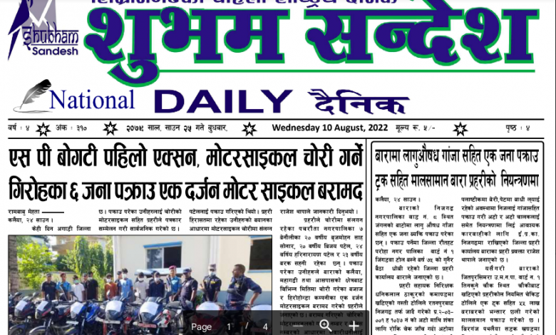 Home/पत्रपत्रिका/२०७९ साउन २५ गतेको शुभम सन्देश दैनिक २०७९ साउन २५ गतेको शुभम सन्देश दैनिक शुभम सन्देश प्रकाशित : २०७९ श्रावण २५,बुधबार 647 यहाँ बाट डाउनलोड गरि पढनुहोला आफ्नो प्रतिक्रिया दिनुहोस