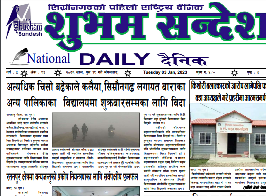 Home/पत्रपत्रिका/२०७९ पुष १९ गतेको दौनिक पत्रीका २०७९ पुष १९ गतेको दौनिक पत्रीका शुभम सन्देश प्रकाशित : २०७९ पुष १९,मंगलवार 634 DOWNLOAD HERE आफ्नो प्रतिक्रिया दिनुहोस