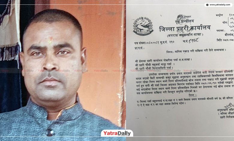 पक्राउ पुर्जी जारी भएको २० दिनसम्म पनि पक्राउ परेनन् वडाअध्यक्ष पटेल