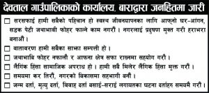 व्यवसायीहरु संकटमा परेको बताउदै समस्या समधान गर्ने बारेमा राज्यले समयमै ध्यान दिर्नुपर्ने अर्का व्यवसायी प्रदिप चौधरीले बताउनुभयो । जिल्लाका विभन्न ठाउँबाट संकलित हस्ताक्षर राष्ट्र बैंकका गर्भनर, संघीय सरकारका अर्थमन्त्री र प्रधानमन्त्रीलाई बुझाइने नगर उद्योग बाणिज्य संघका अध्यक्ष शर्माले जानकारी दिनुभयो ।