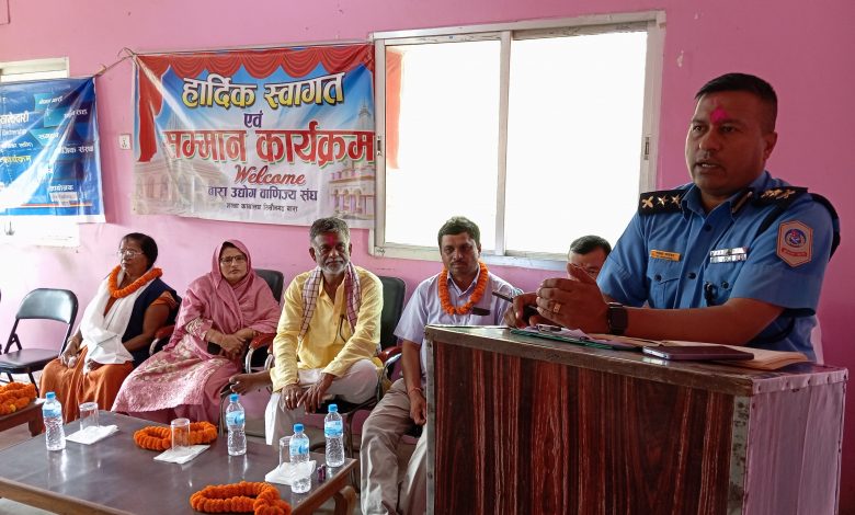 ३० वैशाख,सिम्रौनगढ । बाराको सिम्रौनगढ नगरपालिका वडा नम्बर ६ स्थित उद्योग वाणिज्य संघको सभा कक्षमा अन्तरक्रिया एवम् सम्मान कार्यक्रम सम्पन्न भएको छ । उद्योग वाणिज्य संघ सिम्रौनगढका अध्यक्ष लालबाबु प्रसाद कुशवाहाको अध्यक्षता तथा बारा प्रहरी उपरीक्षक महेन्द्र खडका प्रमुख आतिथ्यमा कार्यक्रम सम्पन्न भएको हो ।