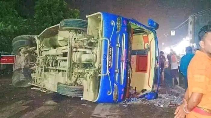बाराका तीर्थयात्री सवार बसलाई एउटा ट्रकले ठक्कर दिँदा बसको एक्सल भाँचिएर सडकमै पल्टिएको केही भारतीय सञ्चारमाध्यमले जनाएका छन् ।