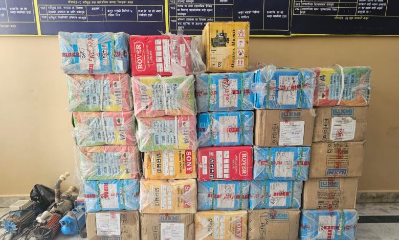 विशेष सूचनाको आधारमा मिति २०८२ श्रावण २५ गते जिल्ला प्रहरी कार्यालय बारा र अस्थाई प्रहरी पोष्ट बसपार्क, कलैया बाराबाट प्र.ना.नि.मेघराज प्रसाद साहको कमाण्डमा खटिएको संयुक्त प्रहरी टोलीले जिल्लाको कलैया उप-महानगरपालिका वडा नं.५ दरबारटोल स्थित बस्ने अं.वर्ष ५० को नैमुदिन अंसारीको तिन तल्ले पक्की घरको भुई तल्ले अगाडीको सटर कोठा भित्र राखेको बिल भरपाई नभएको अं.मुल्य रू.३ लाख ६४ हजार बराबरको विभिन्न कम्पनीको नयाँ सिलाई मेसिन २८ वटा वरामद गरी कानुनी प्रकृया अगाडि बढाईएको जिल्ला प्रहरी बाराका प्रहरी प्रवक्ता बिजयराज पण्डितले जानकारी गराएका छन ।