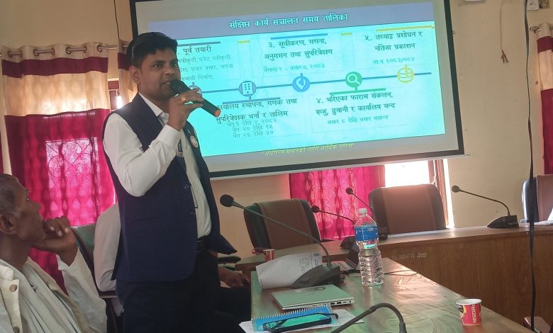 यसैबीच, सार्वजनिक कार्यतालिकाअनुसार गणना प्रक्रिया चरणबद्ध रूपमा अघि बढ्नेछ। गणक तथा सुपरिवेक्षक छनोटदेखि तालिम, स्थलगत तथ्यांक संकलन, अनलाइन प्रविष्टि र अन्तिम लेखापरीक्षणसम्मका गतिविधि असार मसान्तभित्र सम्पन्न गर्ने लक्ष्य राखिएको छ।