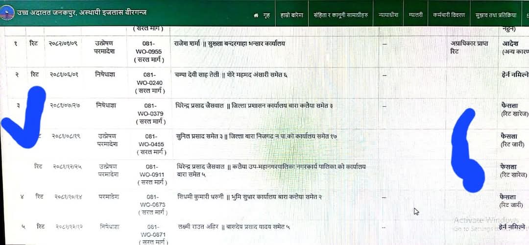 कलैया , जेठ २८ गते । अब देखि राजमार्ग र सहायक राजमार्गमा कुनै किसिमको कर न उठाउन उच्च अदालत जनकपुर अस्थाइ इजलास बिरगँजले फैसला गरेको छ । गत वर्ष २०७५/०८/१७ गते मन्त्रि परिषदले गरेकाे निर्णय तथा मिति २०८१/०७/१२ गतेकाे ताकेता आदेशले राजमार्ग र सहायक राजमार्ग कुनै किसिमकाे कर नउठानु भनि निर्णयकाे अवज्ञा गरि सथानिय तहले सवारी कर तथा वातावरण कर उठाउदै आएकाे कर अब देखि यो फैसला गत सोमबार कर नउठाउन उत्प्रेण परमादेश उच्च अदालत जनकपुर अस्थाइ इजलास बिरगँजले फैसला गरेको छ ।